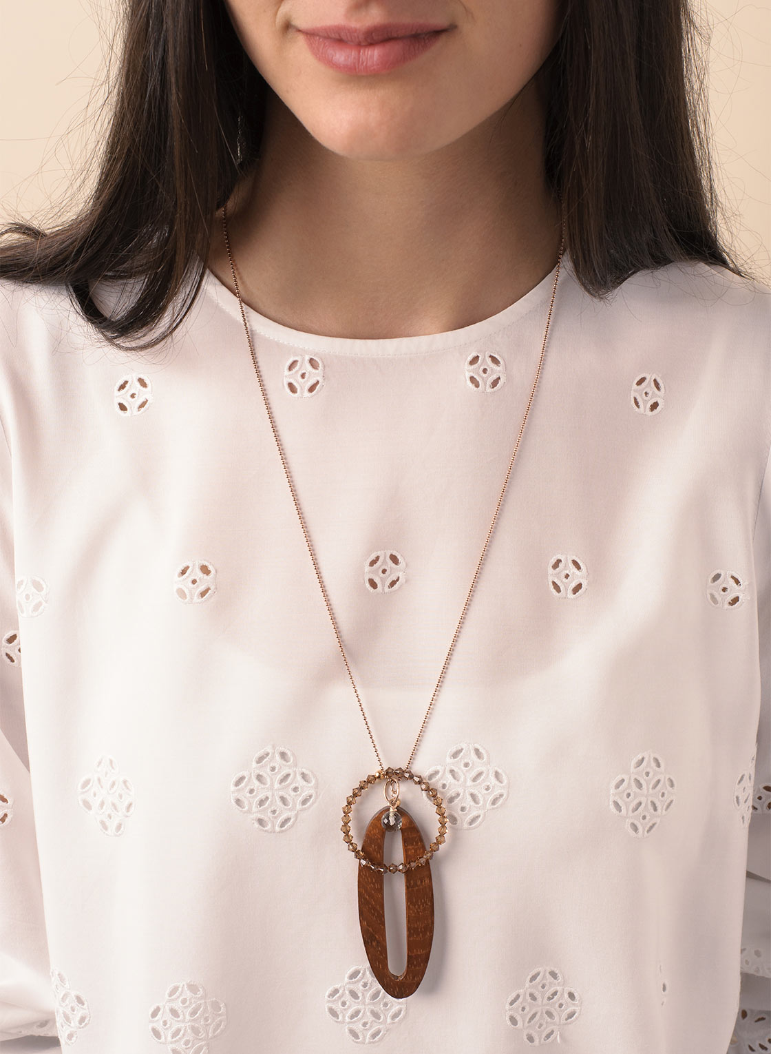 Diese tolle Kette besticht durch eine wunderschöne Farbkombination in Roségold, hellem Topaz und dem warmen Braunton von natürlichem Bayongholz. Leicht, zart und verführerisch schön ist sie ein echter Blickfang.